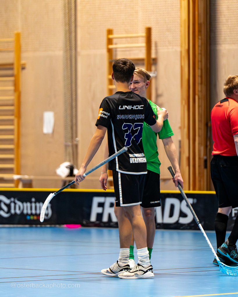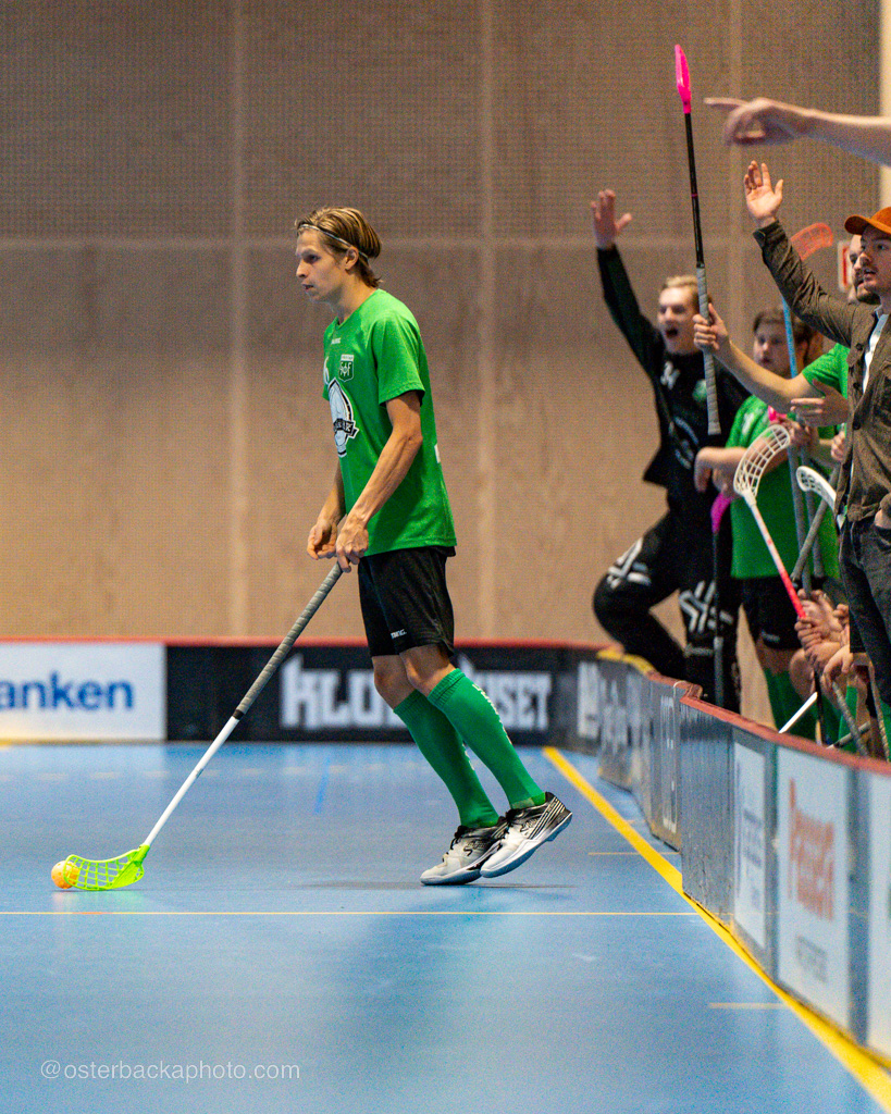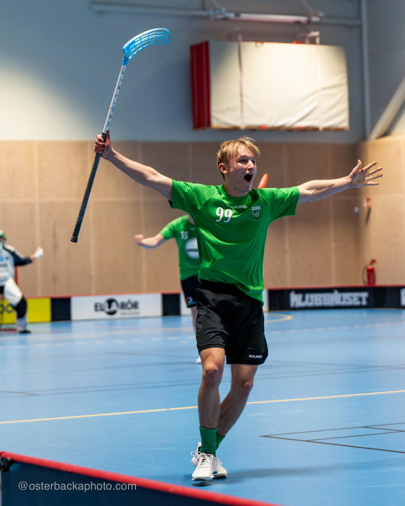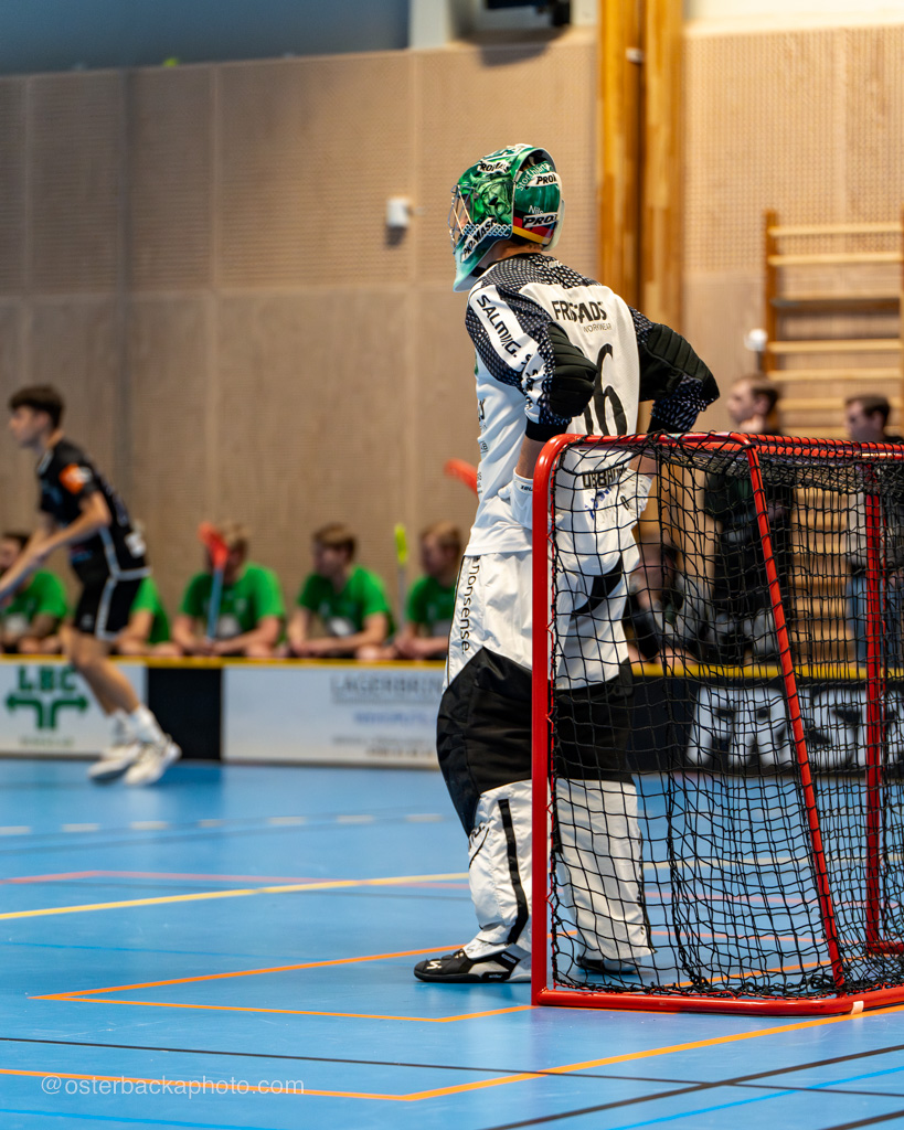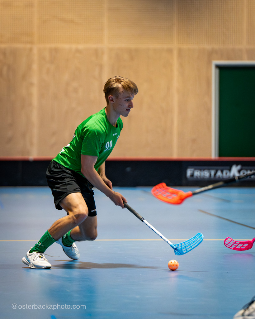 Fristad GoIF Utveckling – Borås IBF, div III, Fristadhallen 2023-11-26. En jämn match från start, men där Fristad GoIF Utveckling, Eleganterna vinner matchen med 6-5. Hatrick av Isak Österbacka.