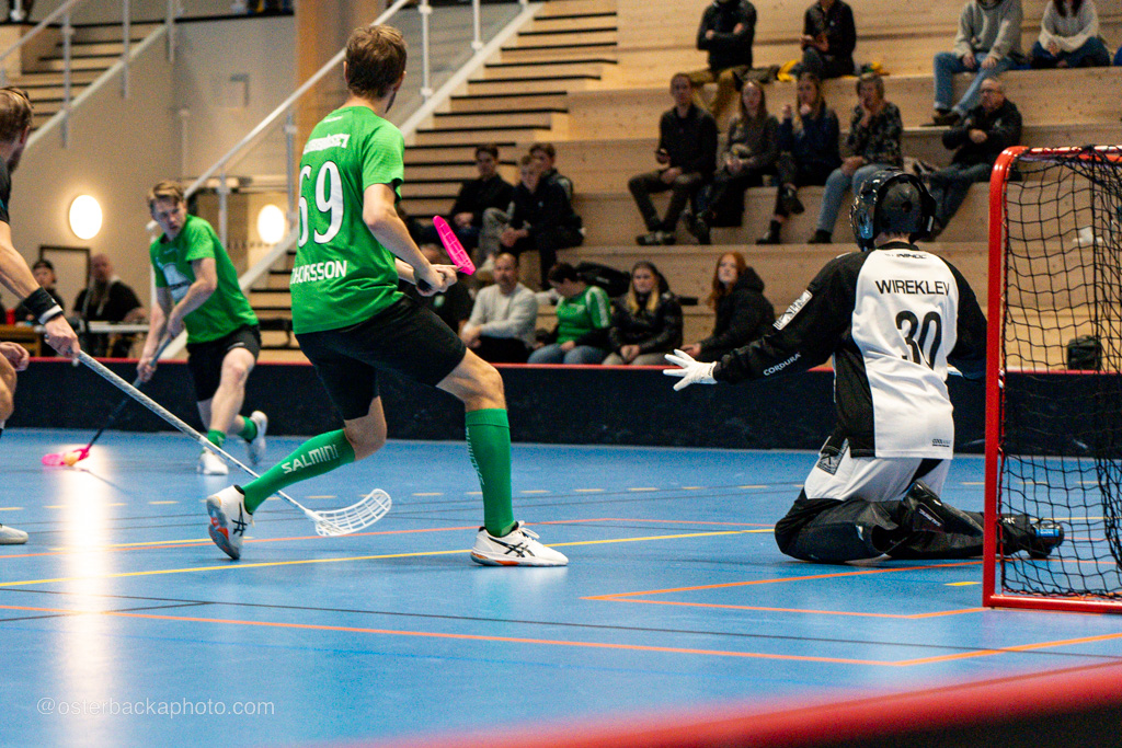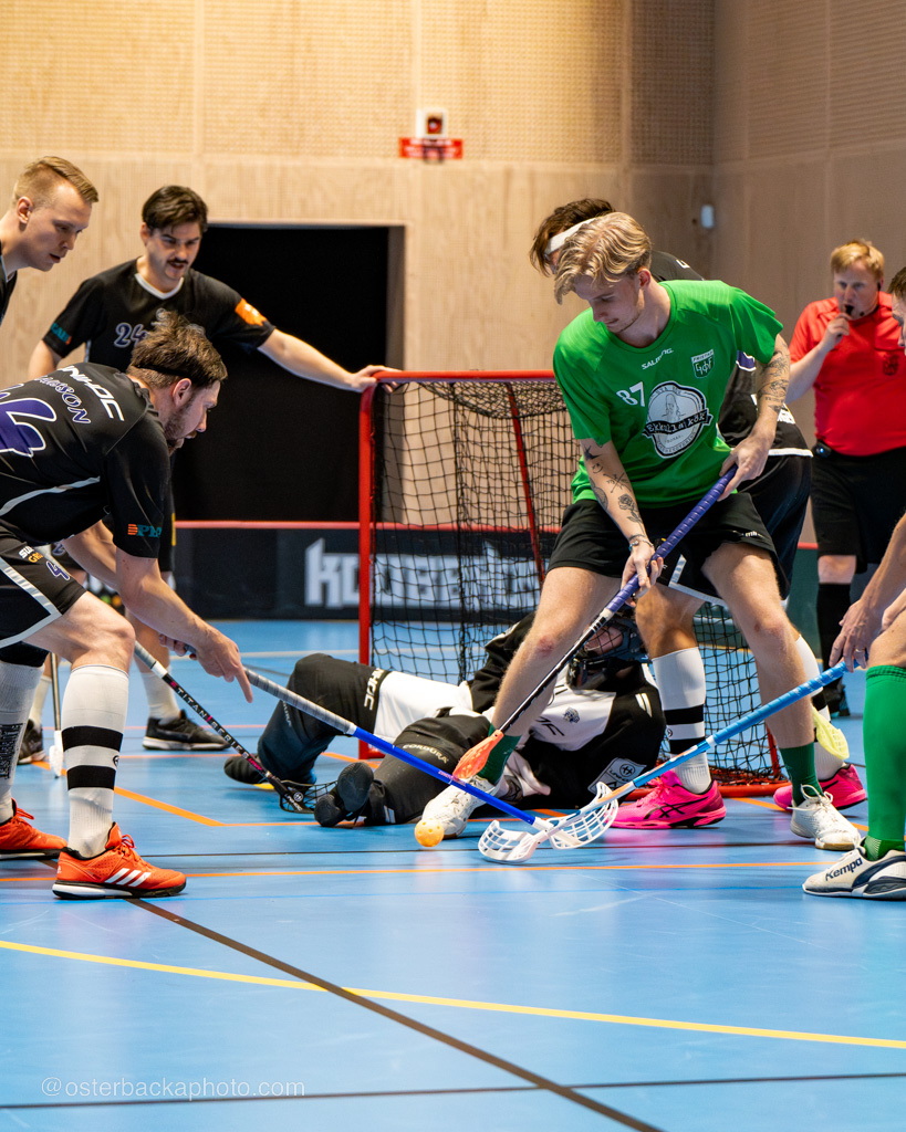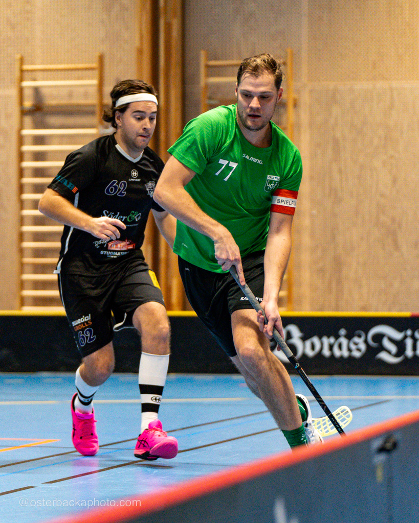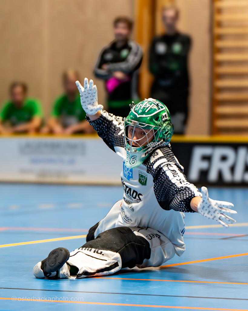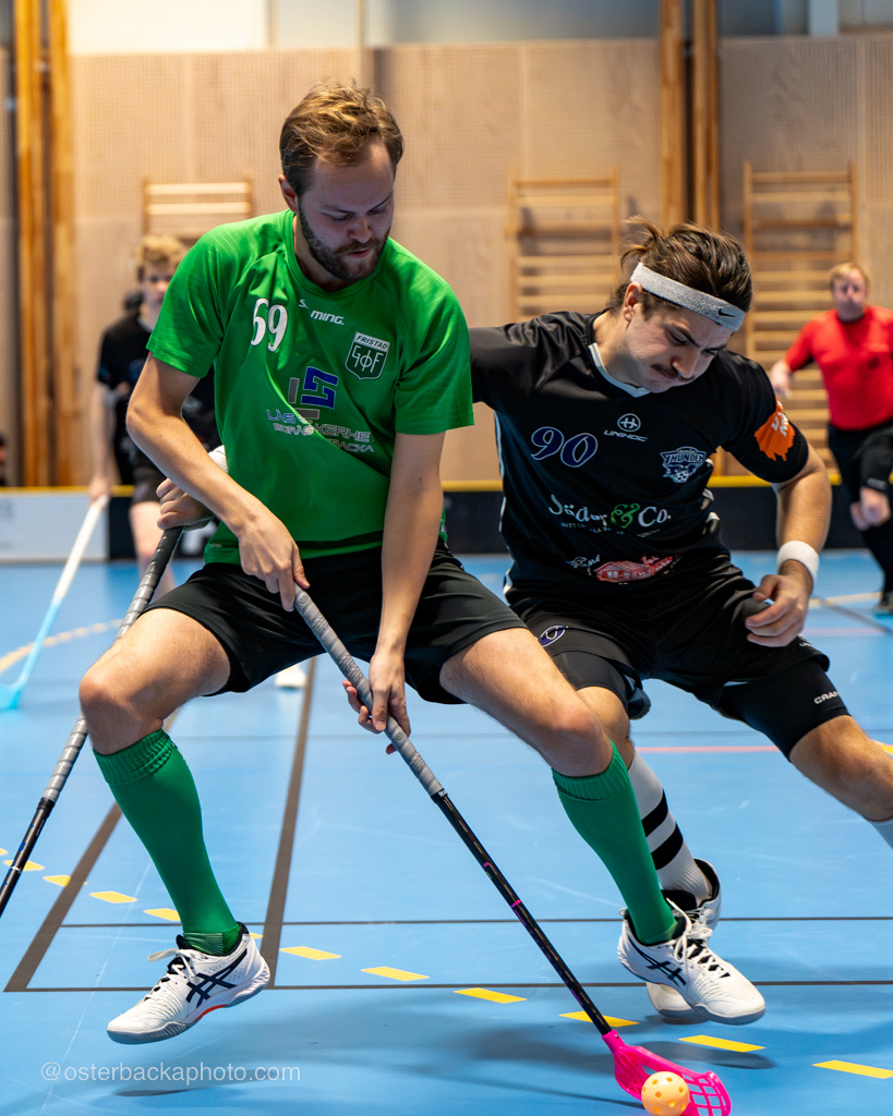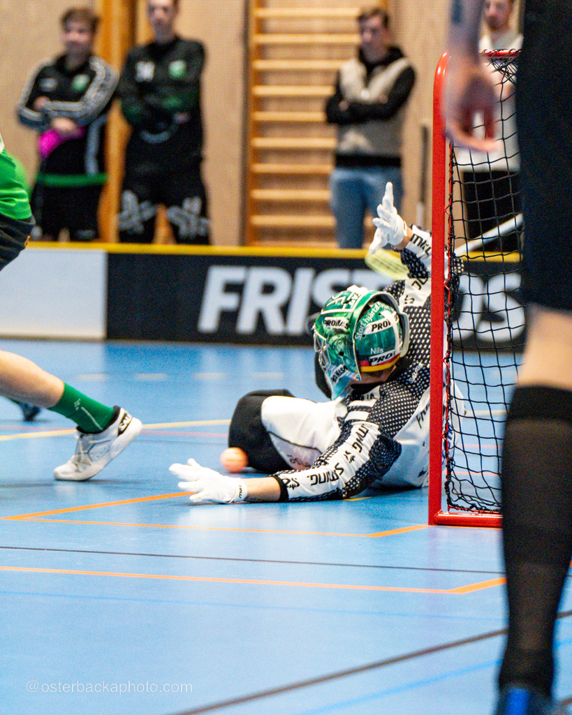 Fristad GoIF Utveckling – Borås IBF, div III, Fristadhallen 2023-11-26. En jämn match från start, men där Fristad GoIF Utveckling, Eleganterna vinner matchen med 6-5. Hatrick av Isak Österbacka.
